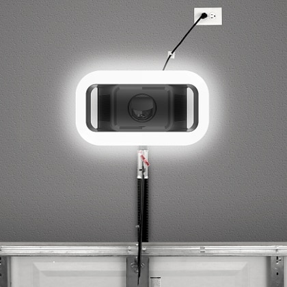 The 360° camera with adjustable wide-angle and full night vision lets you see every corner of your garage — day or night.